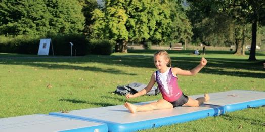 Das OK des diesjährigen Mittelländischen Turnfests in Wohlen/BE hätte da eine Idee. Airtrack-Bahn in Dreiecke schneiden, an eine Schnur binden und voilà, schon hat man nachhaltig produzierte Fähnli für die Turnfest-Dekoration. GYMlive findet das super!