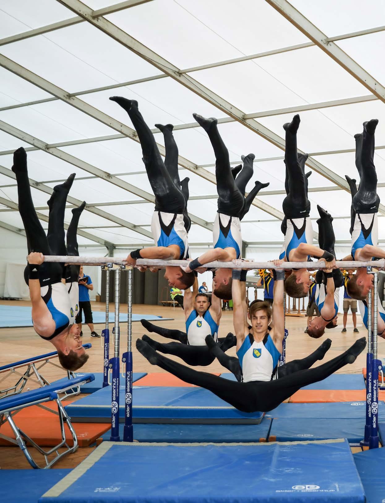 Disziplinen: Gymnastik mit Handgerät, Gymnastik ohne Handgerät, Barren, Boden, Gerätekombination, Reck, Rhönrad, Schaukelringe, Schulstufenbarren, Sprung