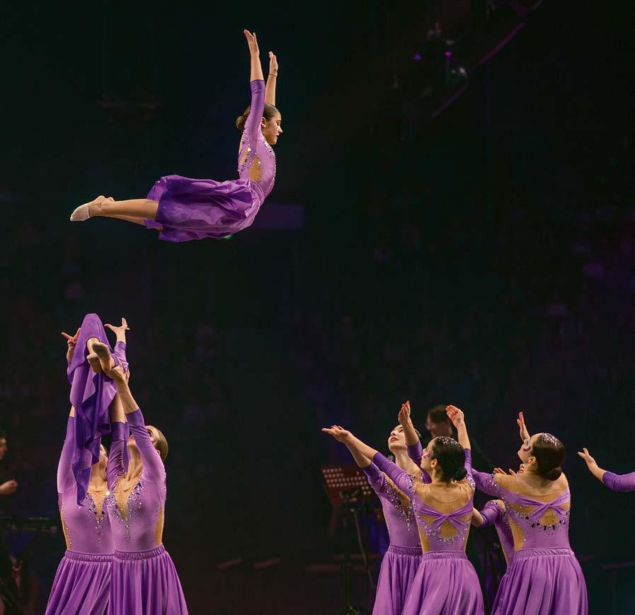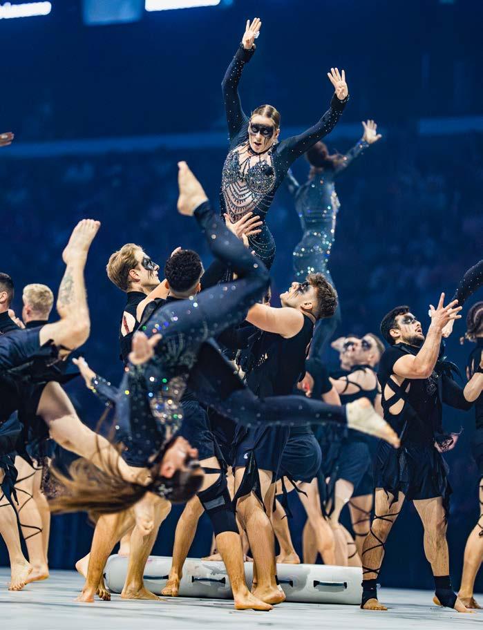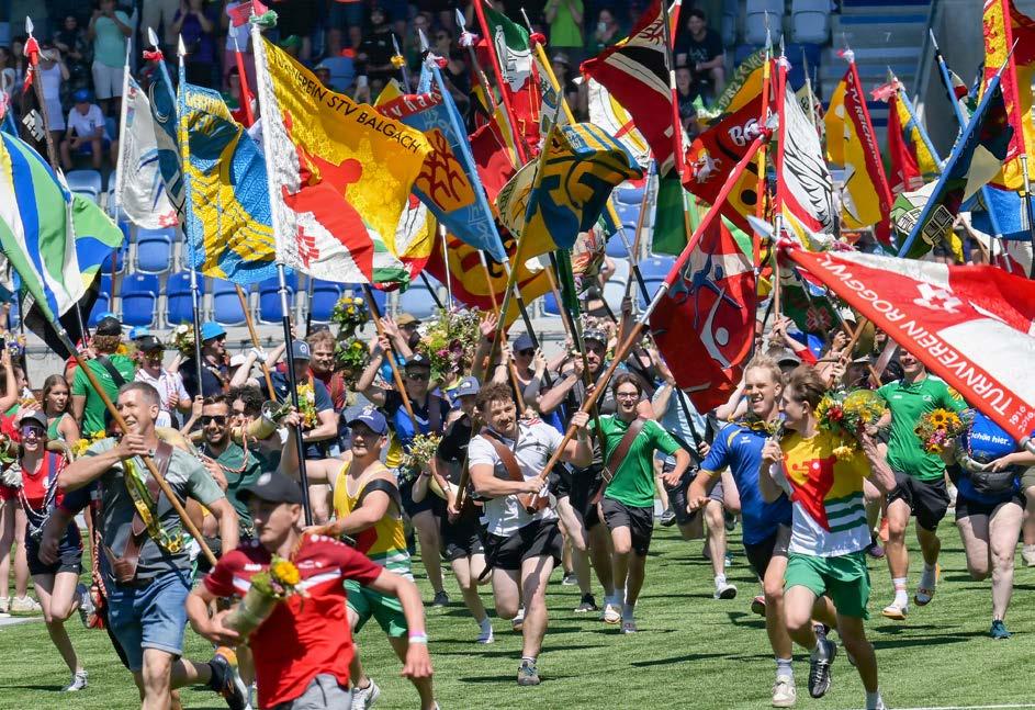 Qu’il s’agisse d’exercices classiques aux agrès, de formations acrobatiques, de gymnastique, de danse ou de spectacles, le programme est aussi coloré que les participants euxmêmes. L’événement a généralement un thème mis en scène de manière impressionnante par la musique, les costumes et les effets de lumière.