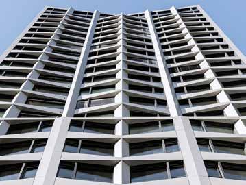 Après plus de 30 ans, le bâtiment aux éléments de façade empilés conserve ses qualités visuelles et son caractère d’icône que la photographe Margherita Spiluttini a saisi dans son cliché (à gauche)