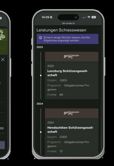 Nunhält die Digitalisierung auchim Schiesswesen Einzug –schrittweise und praxisnah. Die Aufforderung zum obligatorischen Programm wird neu im Dienstmanager,der digitalen Plattform zurVerwaltung des Militärdienstes, bereitgestellt. Schiesspflichtigekönnen sich am Schiessstand neu digital über die DIM-WalletApp ausweisen. Auch für die Schiessvereine ändertsich der Ablauf.Was bisher auf Papier geführtund danach manuell ins System SAT-Admin übertragen werden musste, kann neu direkt im Schiessstand über die SAT-Admin App erfasst werden. Die App istdirekt mit SAT-Adminverbunden. Sobald die Resultateerfasst sind, erscheinen sie automatischimDienstmanager undsind für die Schiesspflichtigen sichtbar.Damit sich dieSchiessvereineauf die Änderungen einstellen und