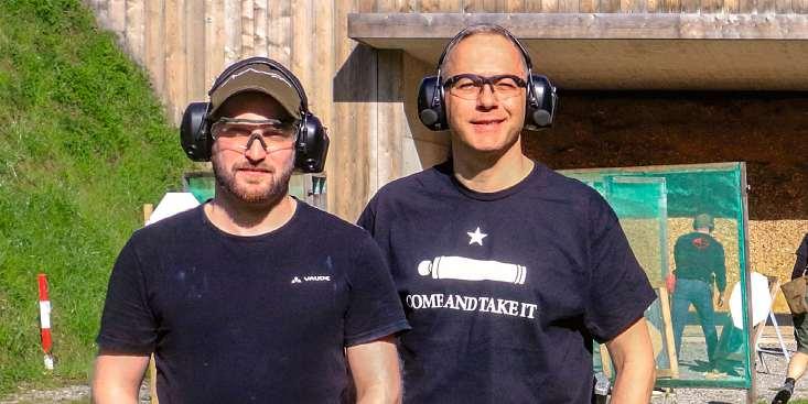 Daniel Burger et Jarkko Aro au stand de tirduCentre national de performance à Bienne.