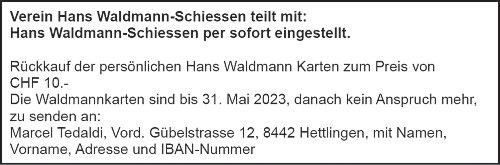 Spediteci il vostro annuncio per posta assieme a CHF 10 (inserzione di testo) o CHF 20 (inserzione fotografica) e una copia della vostra carta d’identità o del vostro passaporto a: Schiessen Schweiz, Kleinanzeigen, Lidostrasse 6, 6006 Luzern Immagini (come * jpg, * tiff o * pdf) da spedire in alta risoluzione in forma elettronica a: redaktion@swissshooting ch