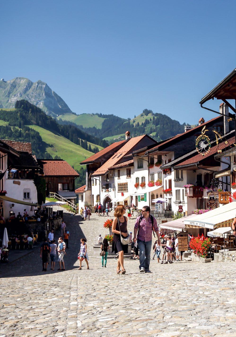 Le bon plan : le parcours découverte « du fromage et des pierres » Formé au XIIe siècle au pied de la montagne et au bord d’un ruisseau, ce village bucolique de la HauteGruyère s’est développé grâce à son activité pastorale et fromagère. Reliques de cette prospérité : grenier, moulins, battoirs, tanneries, villas cossues et deux remarquables églises des XVe et XVIe siècles. grandvillard.ch