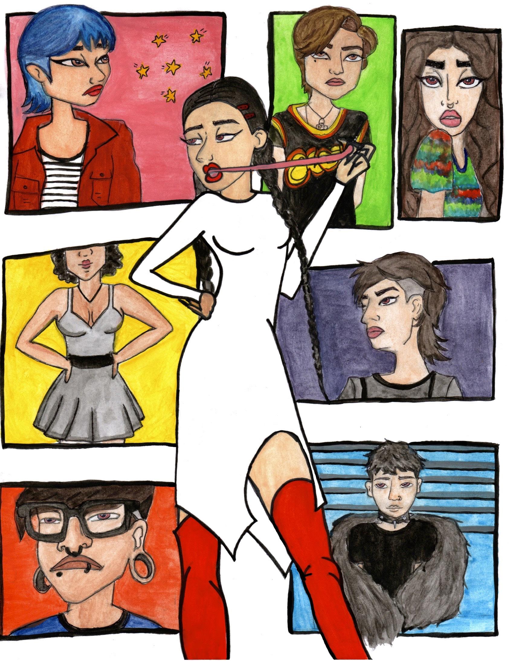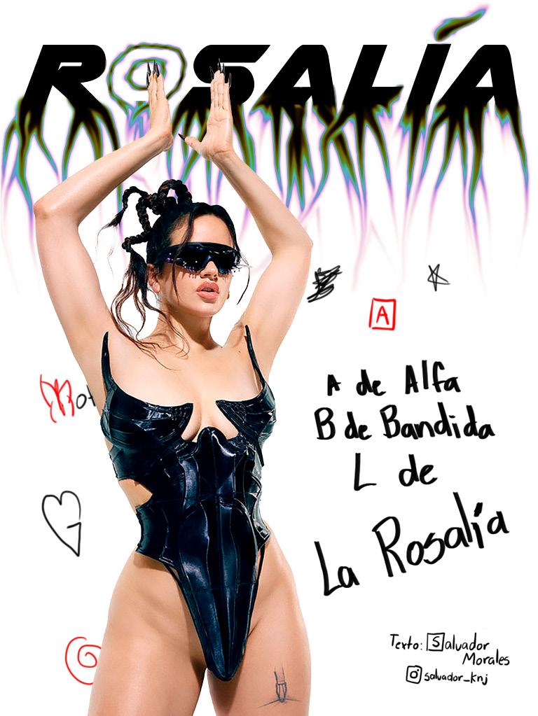 La búsqueda de su propio estilo a palabras de ella fue muy complicado ya que hay muchas personas haciendo lo mismo, sin embargo, “traté de tomar lo que más me gusta de las personas que más admiro y hacen lo mismo que yo”. Así, ella misma se autodefine como “Camaleónica, pues depende mucho de lo que esté escuchando o viendo, y el estado de ánimo influye bastante”, el pun to en el que logró sentirse realizada con su estilo fue “cuando una persona pidió tatuarse un dibujo mío y verlo plasmado en su piel y que las demás personas preguntaran quién lo hizo, fue el momento en el que había encontrado mi estilo”. En esta edición de Switch contamos con su estilo y particularidad en la portada de Rosalía, su fuerza y dinamismo rompiendo el esquema.