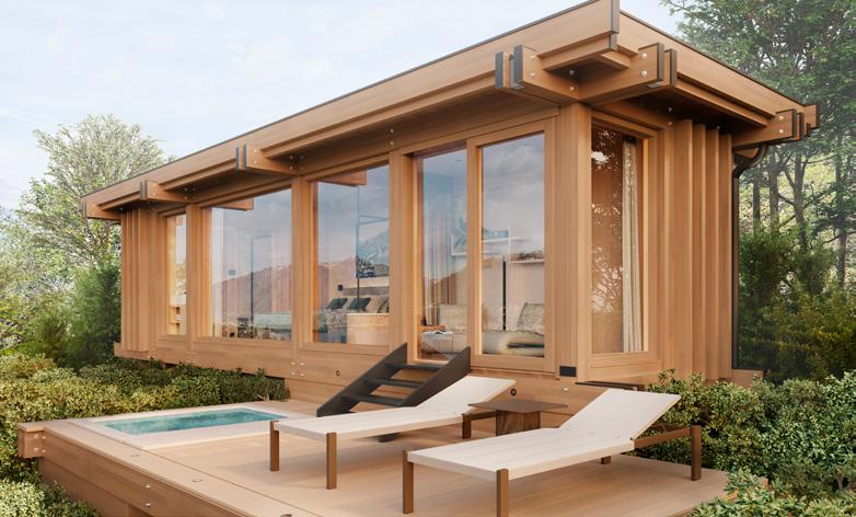 Habitat Lago Maggiore in Cambarogno (22) is a retreat by Elia Frapolli, designed to celebrate the local area and offer a unique way to connect with nature. Its free-standing tiny houses provide a relaxing oasis with panoramic views stretching all the way to Locarno (4). Embedded in its natural surroundings, Habitat is committed to sustainable practices. habitatlagomaggiore.ch/en
