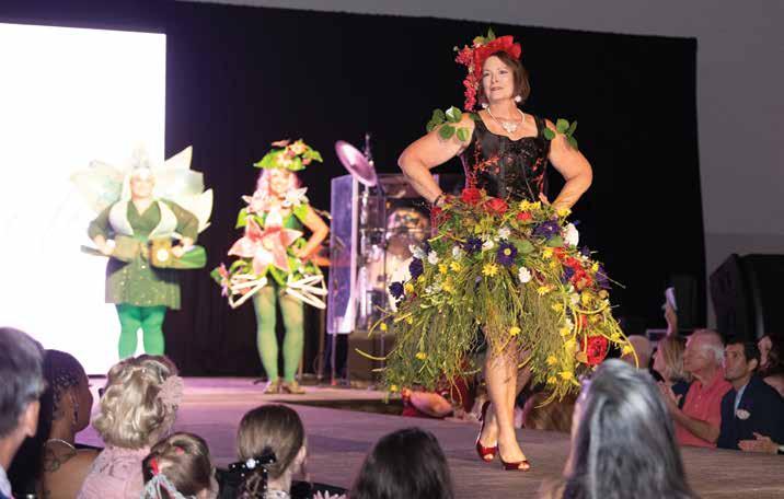 Center’s lobby which was adorned in floral for the night’s “SheRose” theme. Guests were greeted by the Krewe des Fleurs, who brought the flower theme to life with their stunning costumes, while the runway was set against a backdrop of large LED screens with YOU NIGHT branding, courtesy of See-Hear Productions.