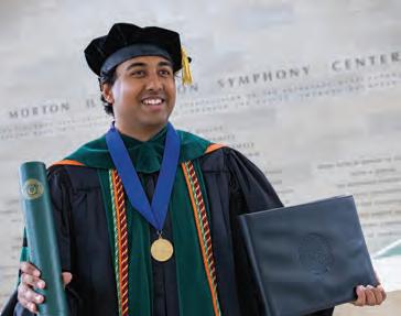 Forest of Light, an installation by artists Tom Orr and Frances Bagley, combines steel, acrylic, and lightemitting diode (LED) lighting for an immersive experience. The work, which was anonymously gifted to the institution, resides on the fourth-floor rooftop garden of UT Southwestern’s West Campus Building 3. Designed to invite exploration, Forest of Light encourages visitors and employees to walk through and take in the breathtaking colors projected by and onto the manufactured forest trees. During the day, the sizeable painted poles demand attention, while at night, the LED lights take glowing precedence. Dynamic in nature, the display is meant to serve as a source of inspiration and experimentation for years to come. Captured here, greeting the morning sun, it is a reminder that while the shadows of our past may linger, the bright hope of the future dawns ahead.