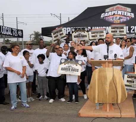 CALIFORNIA: The Southwest Mountain States Council launched a major campaign to help elect Karen Bass, Mayor of Los Angeles. Carpenters put in thousands of man-hours making calls, knocking on doors, and launched one of the largest independent expenditure campaigns in the city’s history. Mayor Bass’ first action was an executive order mandating that all affordable housing projects that use union labor will get approved by the city in 60 days or less.