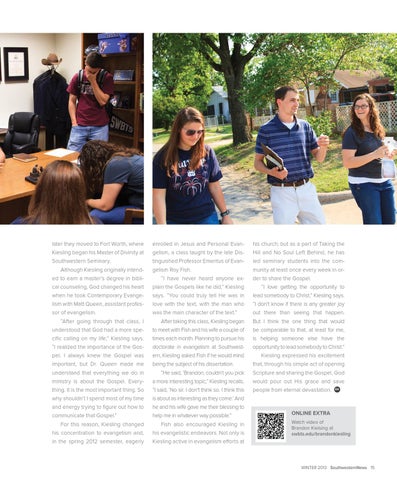 ONLINE EXTRA Watch video of Brandon Kielsing at swbts.edu/brandonkiesling