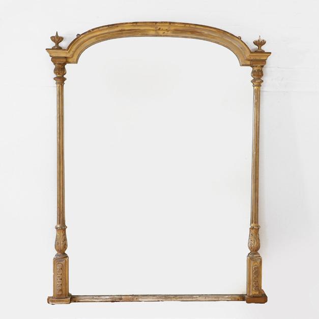 A Victorian gilt and carved wood overmantel mirror, the arched top with urn finials over turned, fluted and acanthus-carved supports, 128cm wide