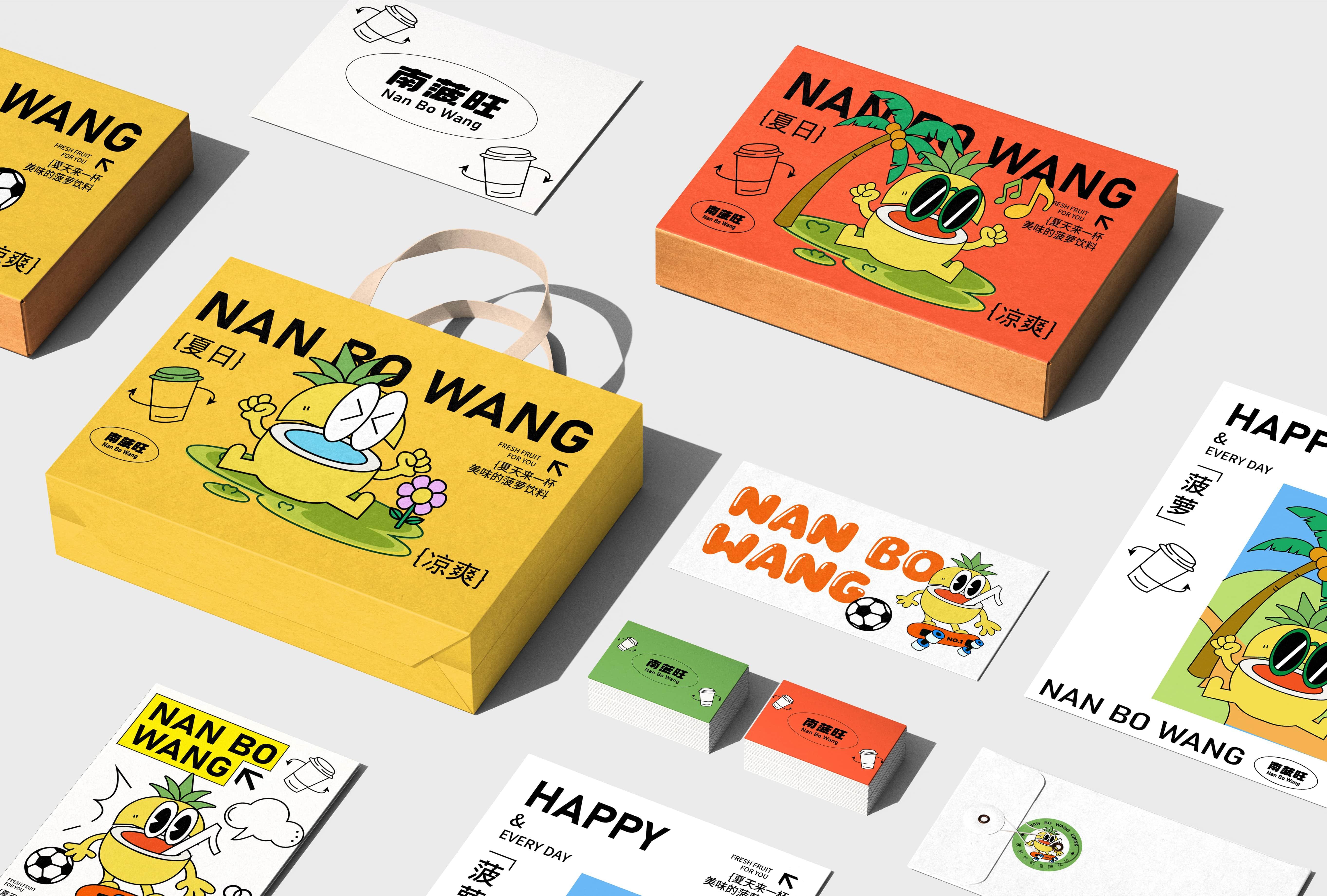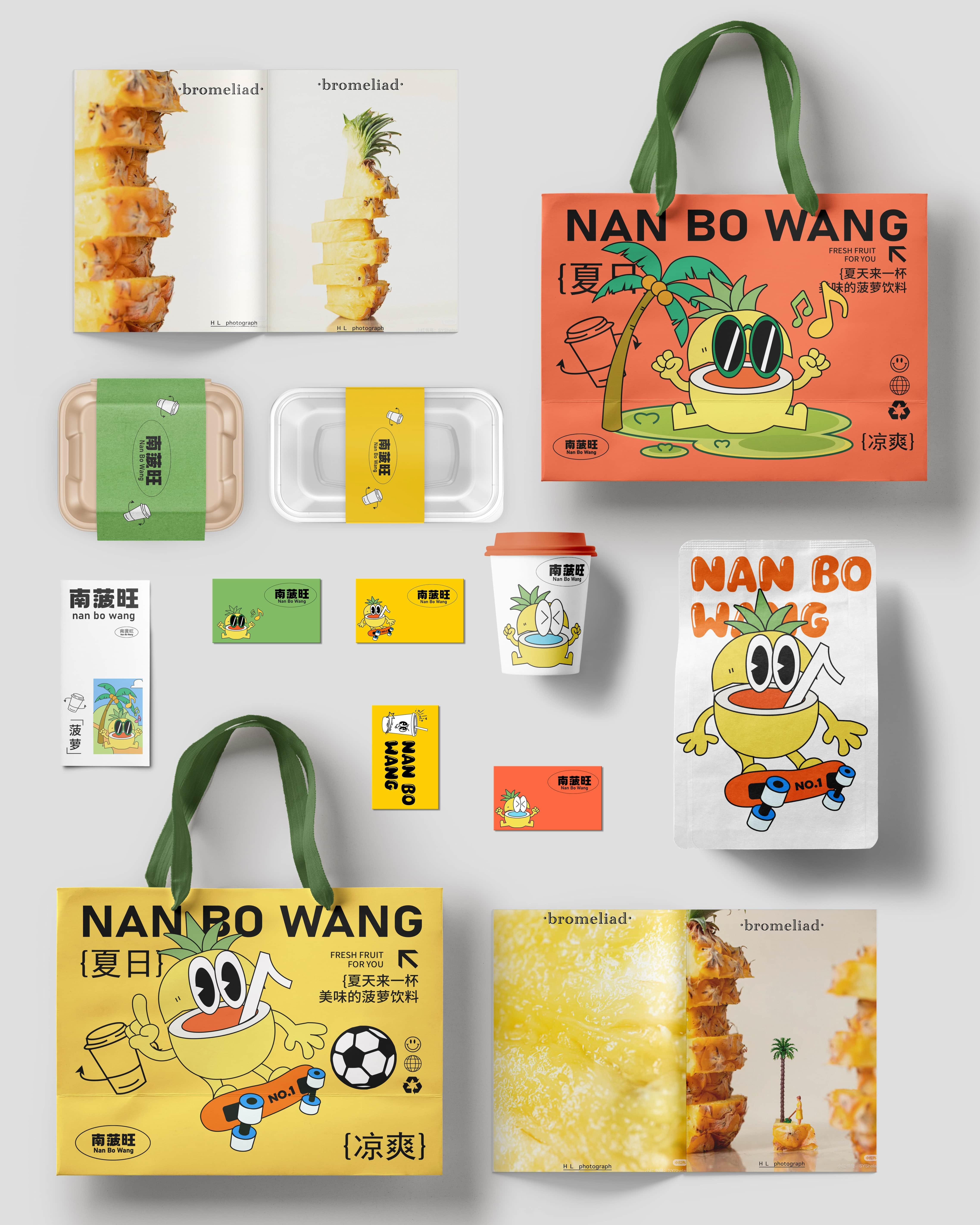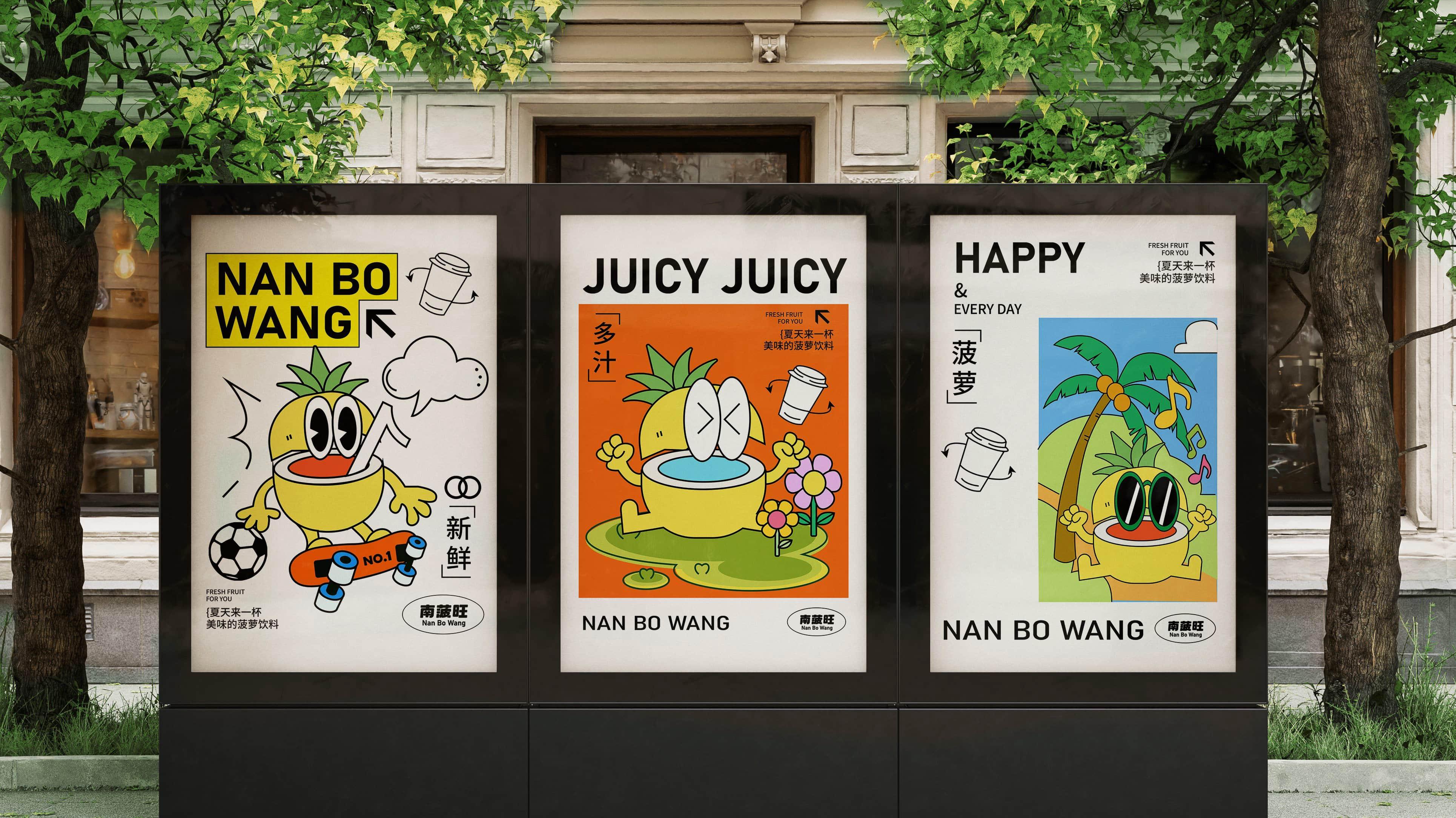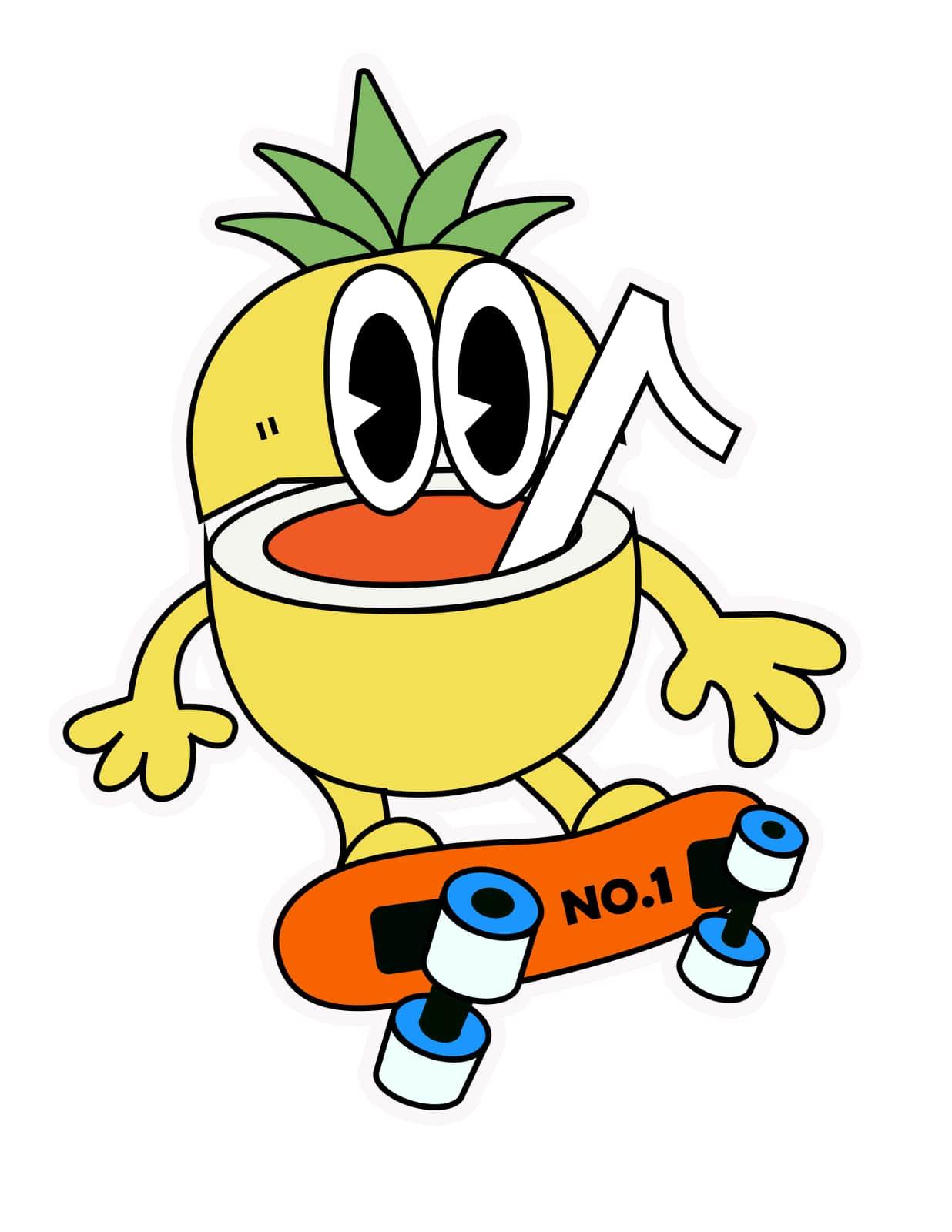 南菠旺打造一个勇敢、热爱运动的小菠萝,通过不同的场景描绘小菠萝不同的 生活场景。让小菠萝给每个人带来力量,传递勇气与快乐,南菠旺提供这种明 媚、元气的空间在炎炎夏日、运动完的你喝上一杯菠萝饮料。