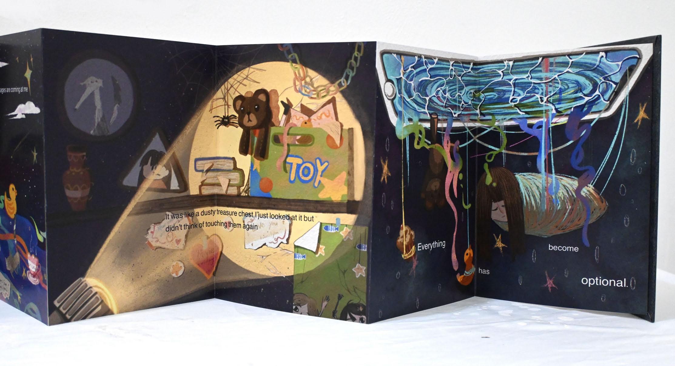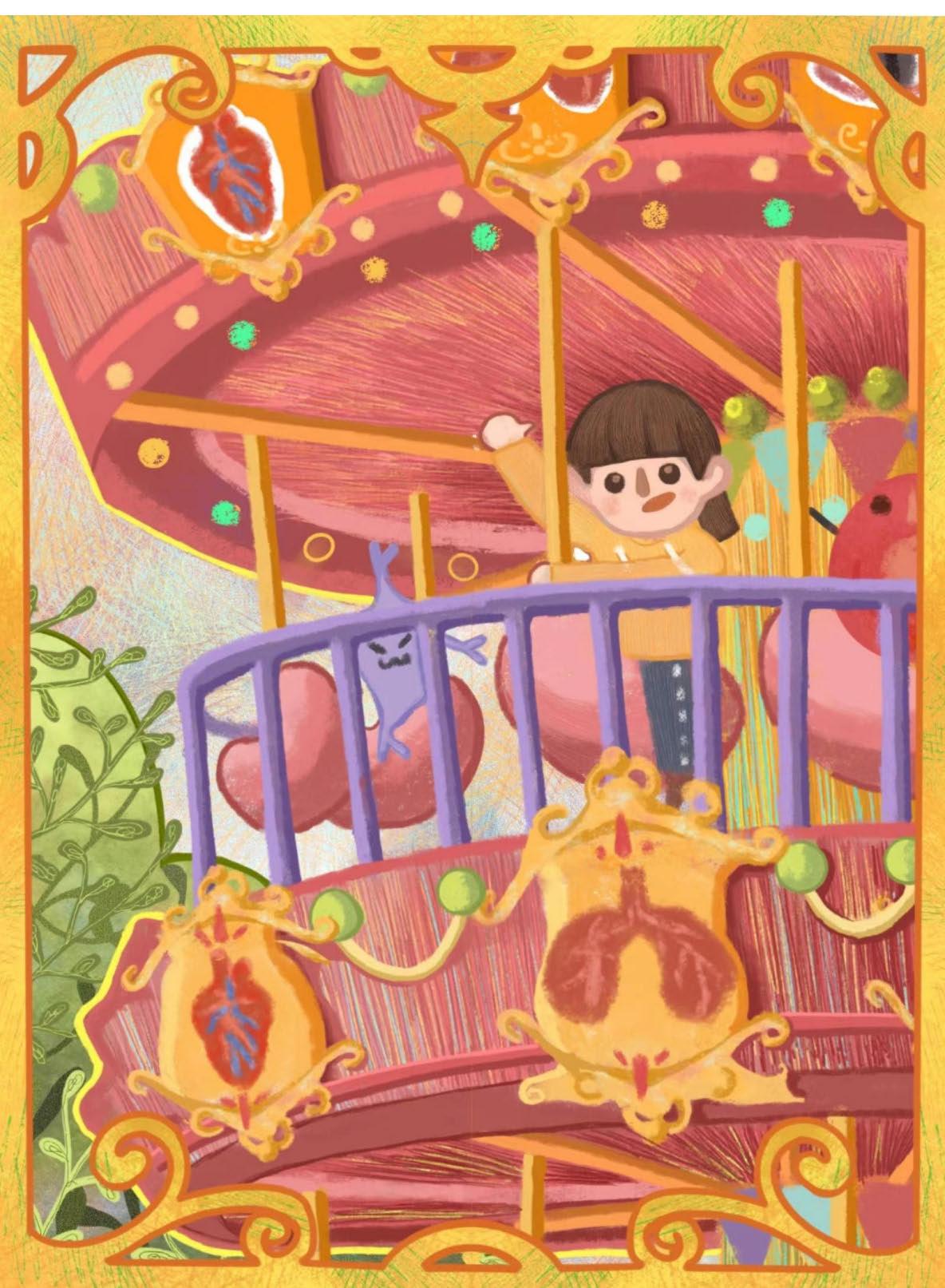 Myworkusesastylesimilartothe illustrationofapicturebookasan expression,expressingmyself-regulation ofmybademotions.Bycomparingthe humanbodytoaplayground,whenIplayinthe"pla yground",Iamactuallycomparing ittotheprocessofregulatingmyown emotions,andwhenthehumanbodyis regulatingitsownemotions,alltheorgansoftheb odyarerunning,andeachorgan representsaride,forexample,theuterus inagirl'sbodyrepresentsagiftstore,the intestinesrepresentarollercoaster,etc.