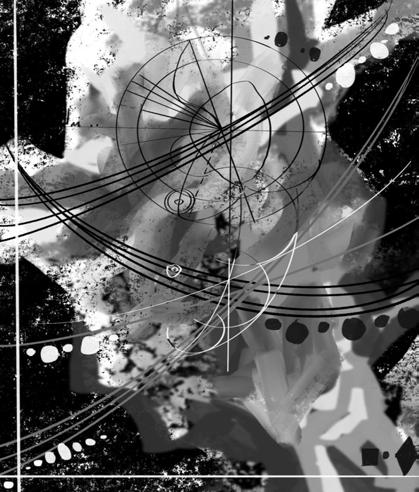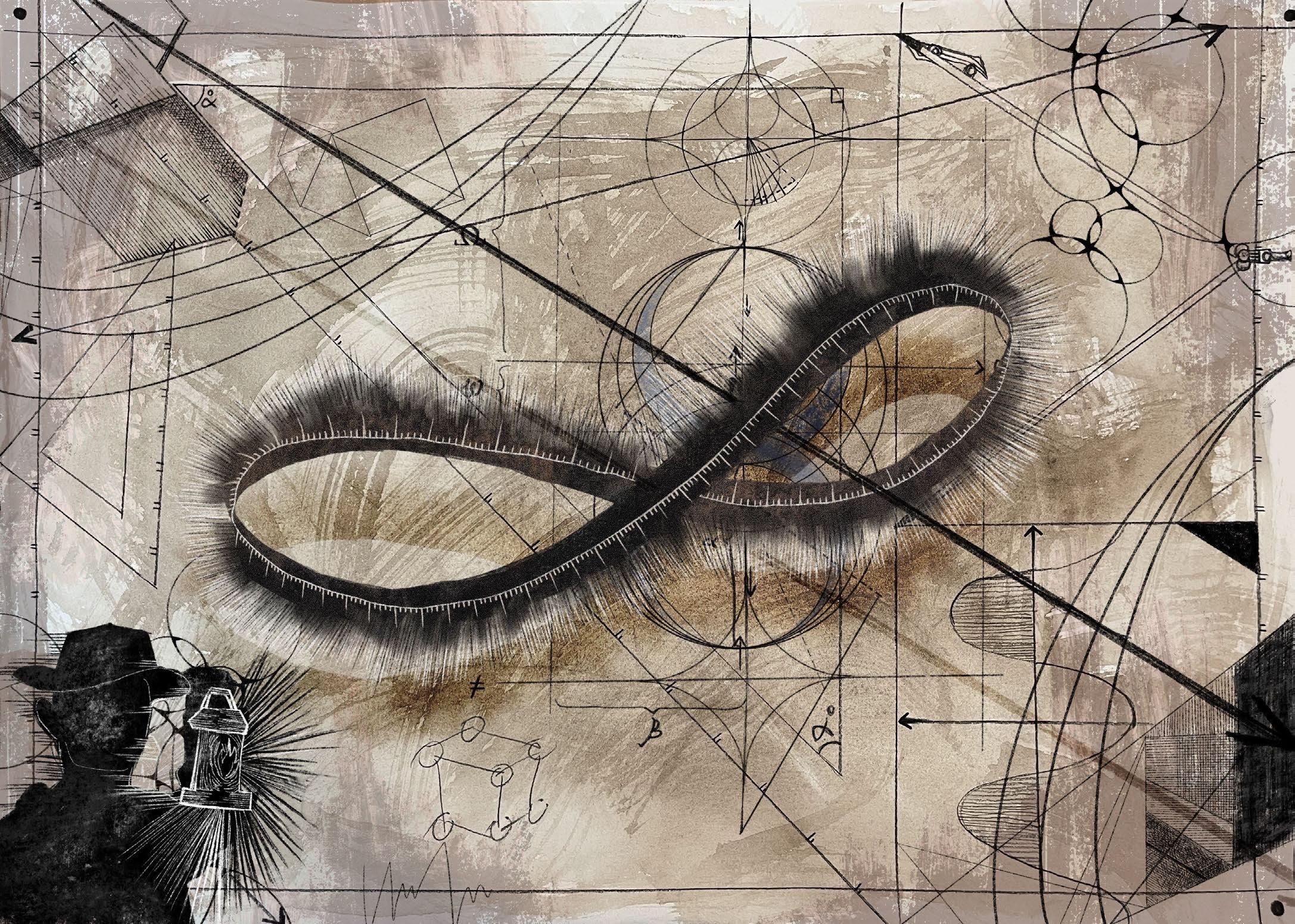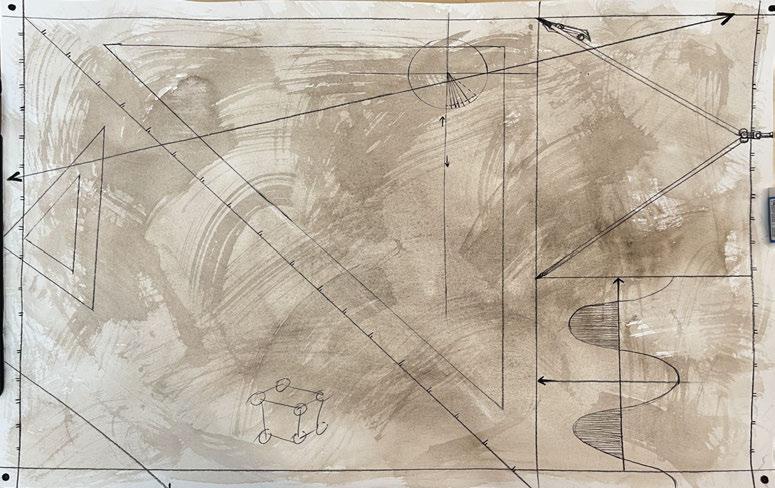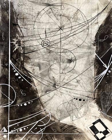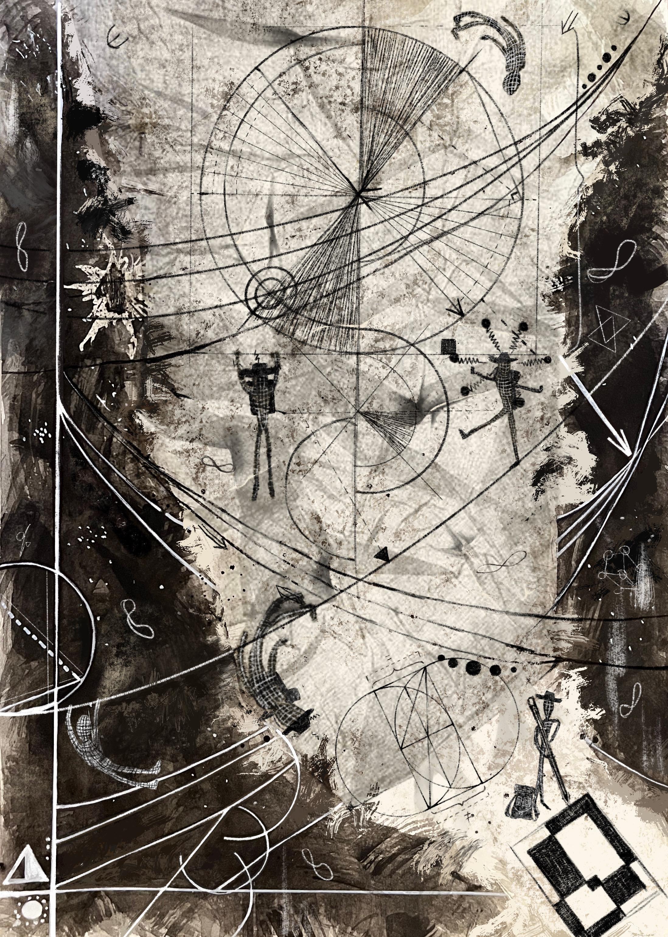 Thetextureoftheimageuseswatercolor andtheeffectofoldpapertogiveasense ofvintagemathematicalmanuscriptsfrom theearlyyearsIwasveryinspiredbythe workofartistsGregoryEucldeand RafaelAraujo,andIlearnedaboutthe finerpointsofgeometrcdrawingandhow tomanipulatetheeffectsoftheimages.