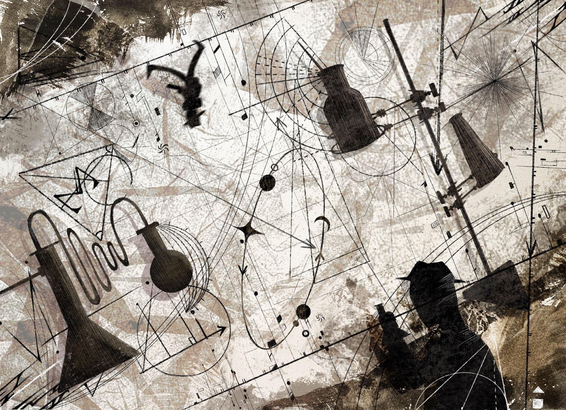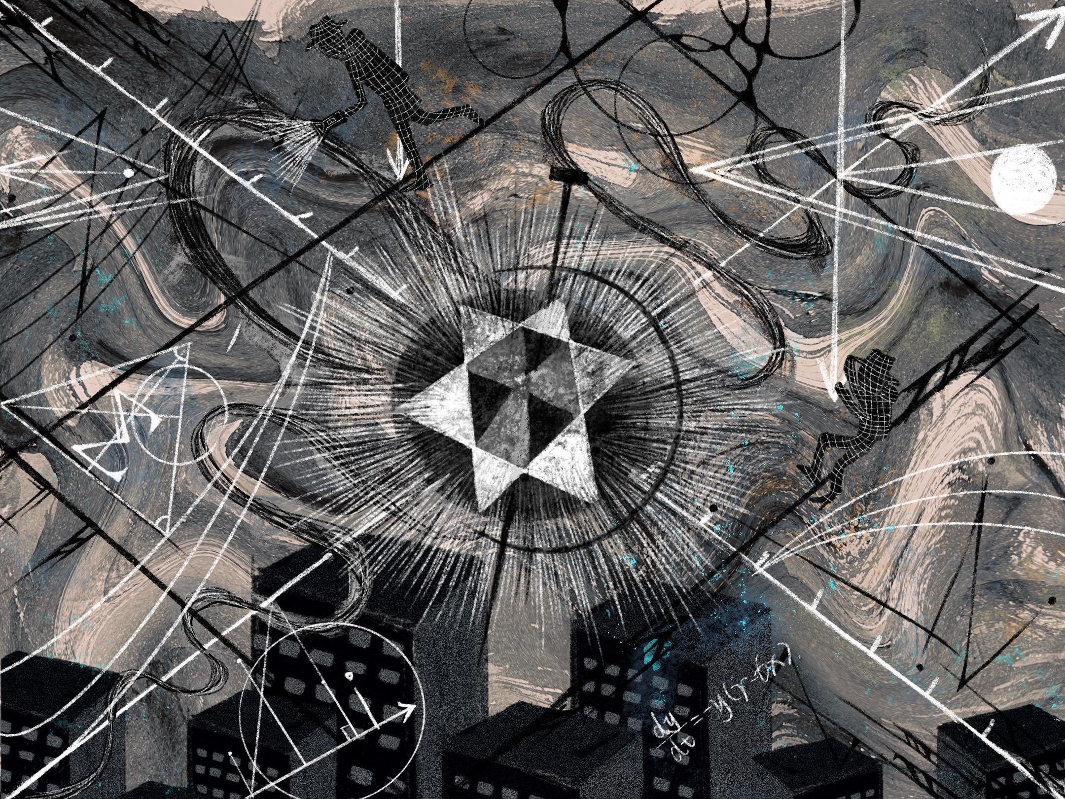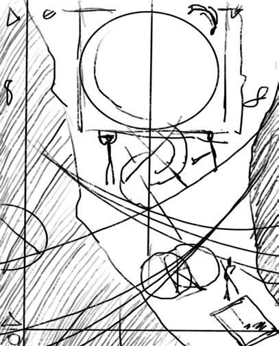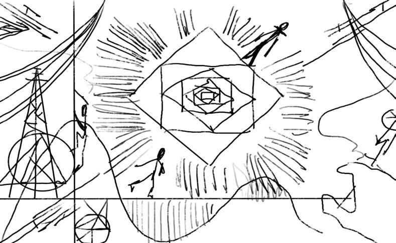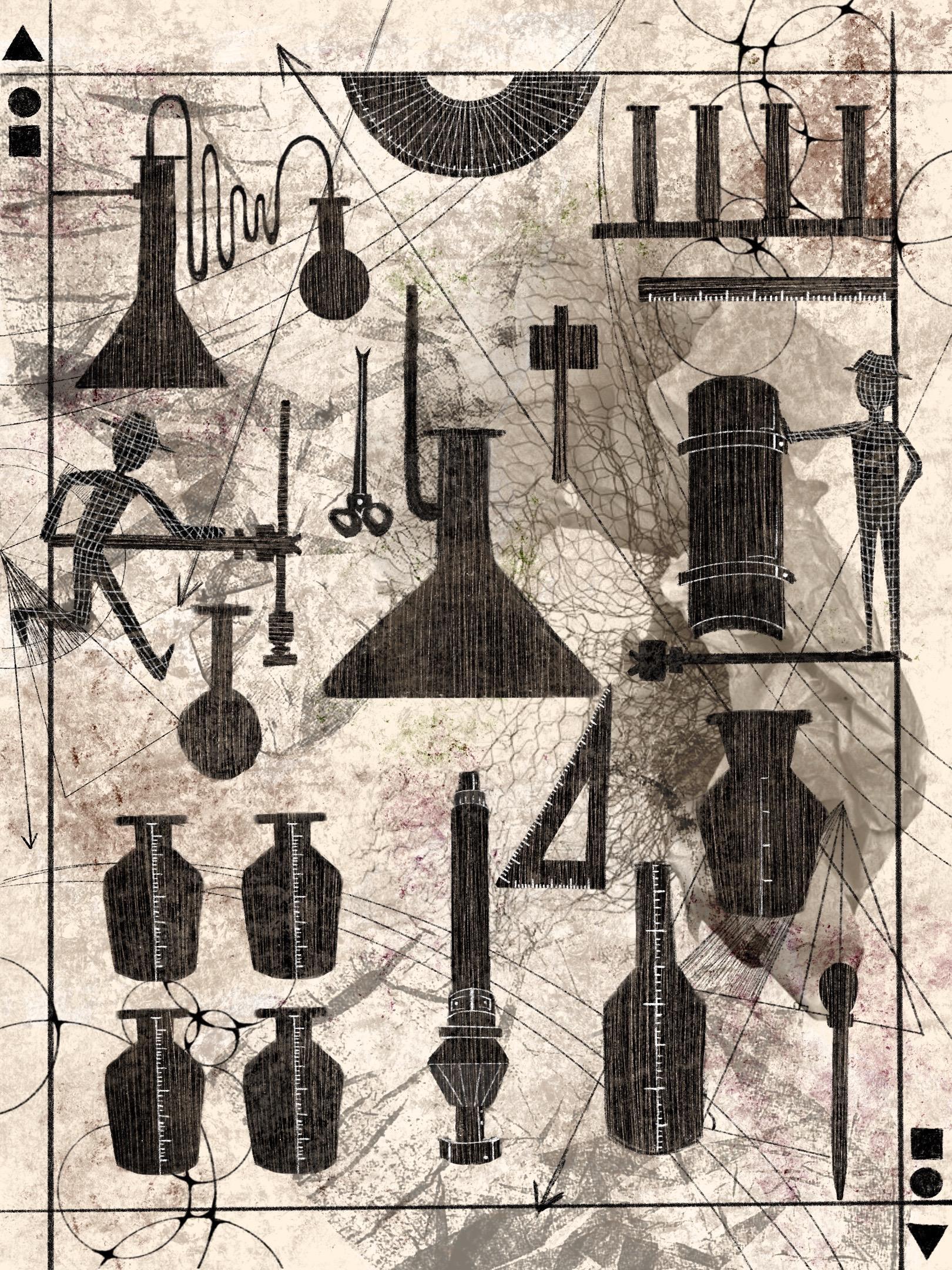 Thetextureoftheimageuseswatercolor andtheeffectofoldpapertogiveasense ofvintagemathematicalmanuscriptsfrom theearlyyearsIwasveryinspiredbythe workofartistsGregoryEucldeand RafaelAraujo,andIlearnedaboutthe finerpointsofgeometrcdrawingandhow tomanipulatetheeffectsoftheimages.