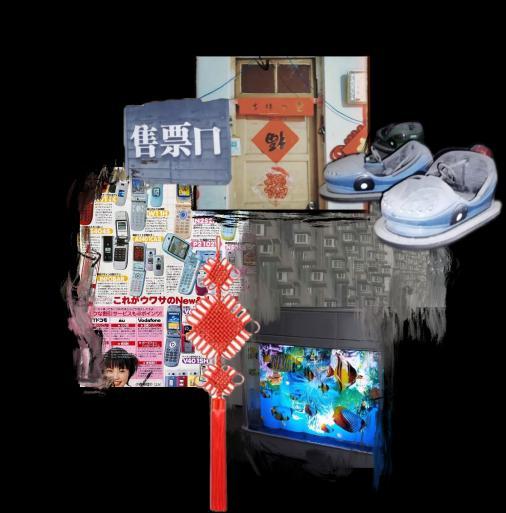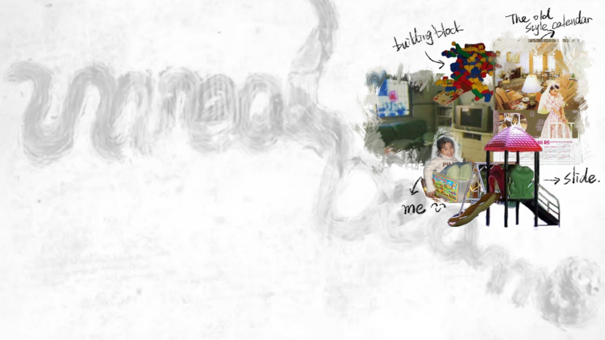 WhileresearchingIfoundalot ofinterestingphotosfrom around2000,suchasalonely slide,old-fashionedphotosof mygrandma'shouseonNew Year'sEve,fishtank decorationsinthehouse,and magazines'descriptionsof digitalproductsatthattime...... What'spastisprologue。 Imadeacollageofthemto createanimpressionistic versionofmychildhood.