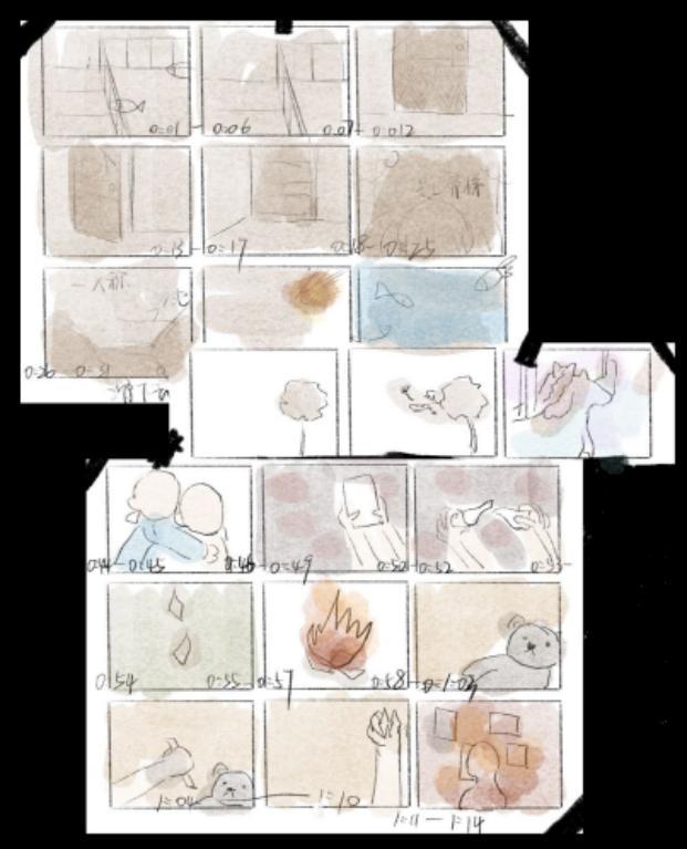 Basedontheimpressionisticversion,Ifurthersearchedforsomevisualreferences,and atthesametime,Ithoughtthatthethemerelatedto"time"shouldbesuitablefor makingimages.Iwasinspiredbyartistswhocombinerealitywithcollageandpainting, orwhousesemi-realistictechniquestocreateimages.Sincethethemeisaboutthe memory,nostalgiaandburningoflostchildhood,Iintendtomaketheimagesfeellike olddv,usingdifferentpaintingmaterialstocreateachaoticandslightlygrotesquesense ofmemoryanddisarray,andeventrytojamandflashbackattheendofthework,to expresstheblurringofthememoriesandthefactthatthetimehaspassedandcan'tbe tracedback.IcategorisedtheoldphotographsIcollectedanddrewonthemtocreate thefootageforthisexperimentalanimation.