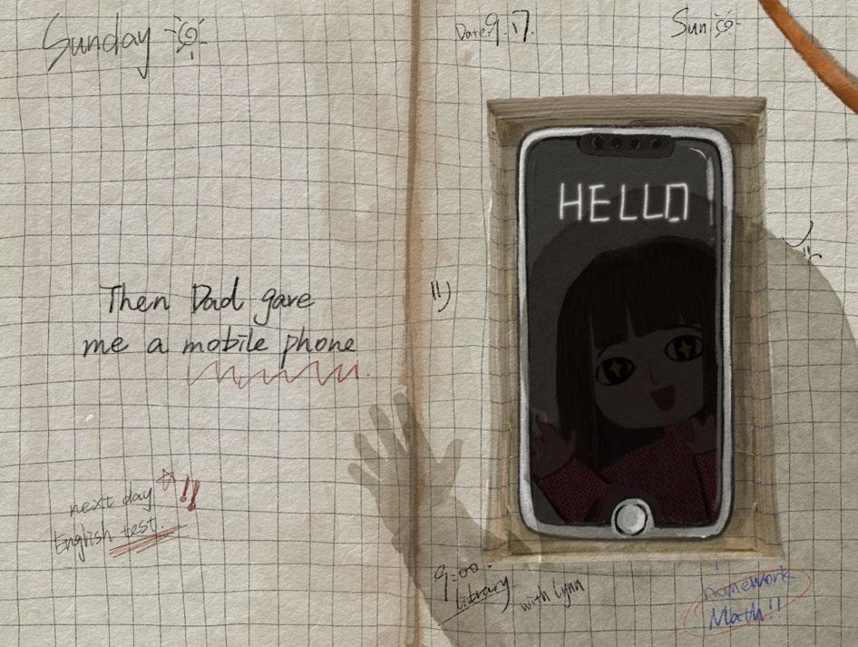 WhenIwasinhighschool,myschooldidn'tallowustobringmobilephones,andtherewerenootheractivities inourdailylifeexceptstudying.Fromthenon,Istartedtowritehandbooksandsmallnotes,andmy classmatesandIusedsmallnotestotelloursecrets,andwewrotedownthefunthingswesawinourdailylife inthehandbooks.ButafterIgraduatedfromhighschool,Igotmyownmobilephone,andIspentmoreand moretimeplayingwithit,andmyhandbookbecamemoreandmoremessy.Iusethisworktoremindmyself thateventhoughmymobilephoneiswithme,Ishouldnotforgettowritedowneverywordwithapen.
