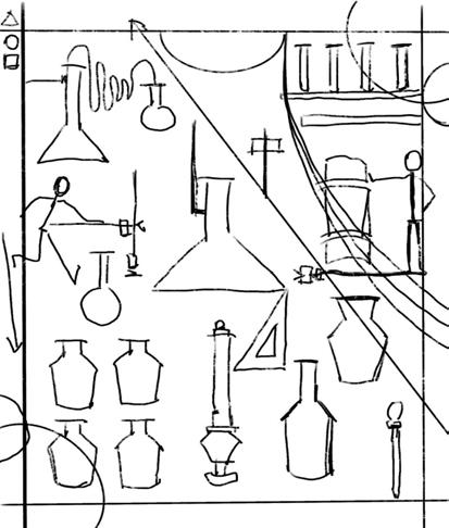 Thelittlemanintheworkrepresentsexporation,andintheexplorationofmathematicsandblackholes,weallgoforward;allkindsofutensls representmathematics;thedots,linesandsurfacesinthepicturerepresentpeoplesevolutionandcalcuationsofthemathematcalbackholes.
