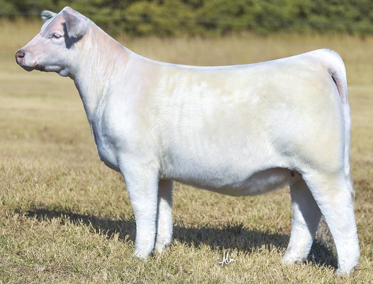 We purchased “Gloria” privately from Sullivans. John fell in love with her mass, power, bone and foot size. She is an impressive beast and was Reserve Supreme Junior Heifer at the Tulsa State Fair. Powerful, soft middled and sound as cat, she is exactly the kind of cattle we like to make the next generation of G– cattle better. Her dam was Supreme Champion in Kansas City. These are sexed female embryos by Coping With Destiny.
