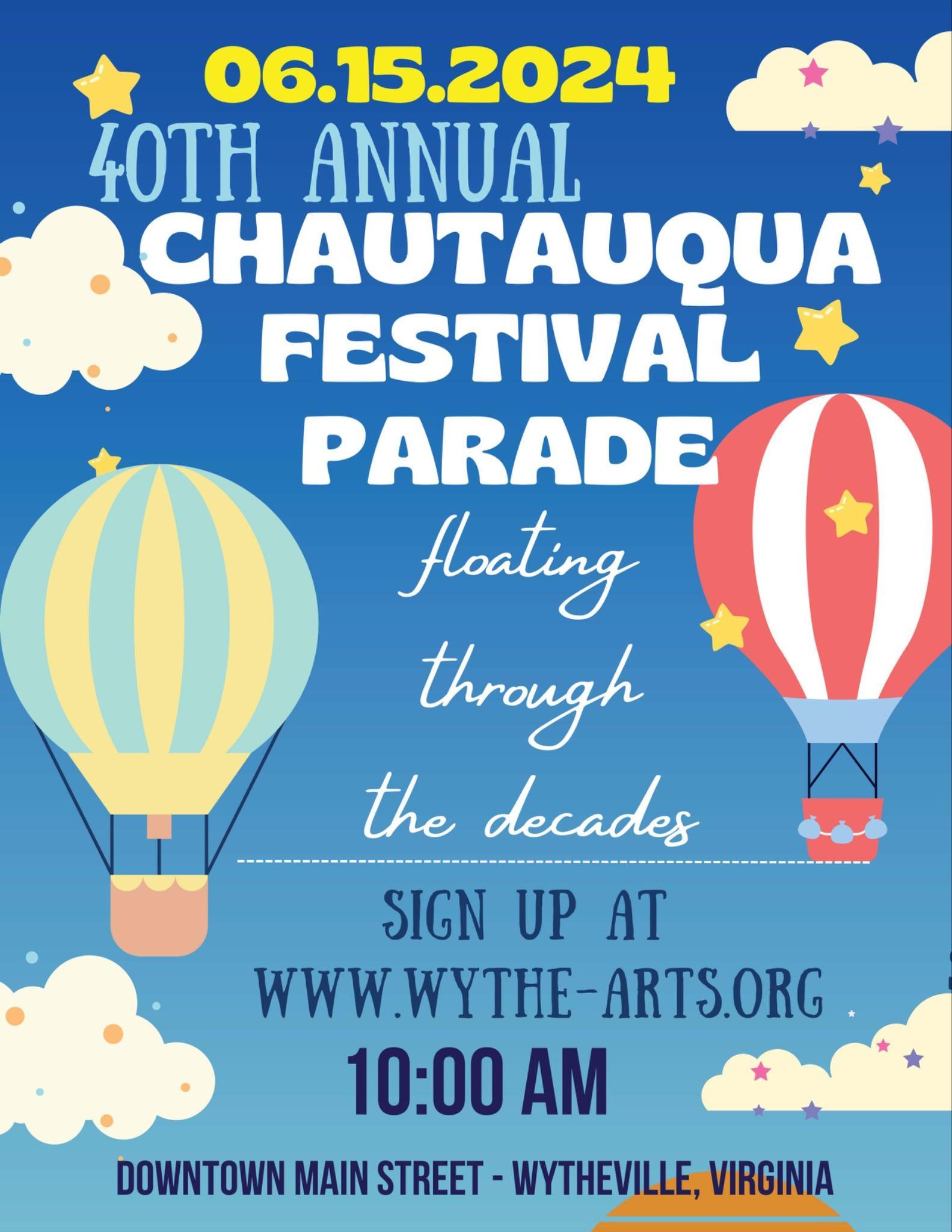 Not to risk inadvertent oversights, the Wythe Arts Council wishes to express sincere thanks to all who contributed toward the success of the Chautauqua Festival-in-the-Park. We know this festival would not be possible without countless volunteer hours. It is estimated that approximately 1,000 volunteers support the activities leading up to and carried throughout the festival.