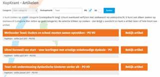 Of artikelen (vanaf 2014) over een specifiek onderwerp opzoeken? Dat kan eenvoudig met onze handige tool. U kunt zoeken op diverse categorieën: zorg/jeugdhulp, indiceren & arrangeren, gedrag, uitdagend onderwijs, dyslexie, nieuwkomers, doorgaande lijn, bijeenkomsten, praktijkvoorbeelden en jonge kind/VVE.