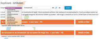 U kunt dan verfijnen met een zoekwoord via zoekopdracht of alleen zoeken op een zoekwoord (bij categorie selecteert u dan ‘geen categorie’). U krijgt daarna de selectie die past bij uw zoekwoord waarna u het artikel of de hele krant waar het artikel in heeft gestaan, kunt lezen.