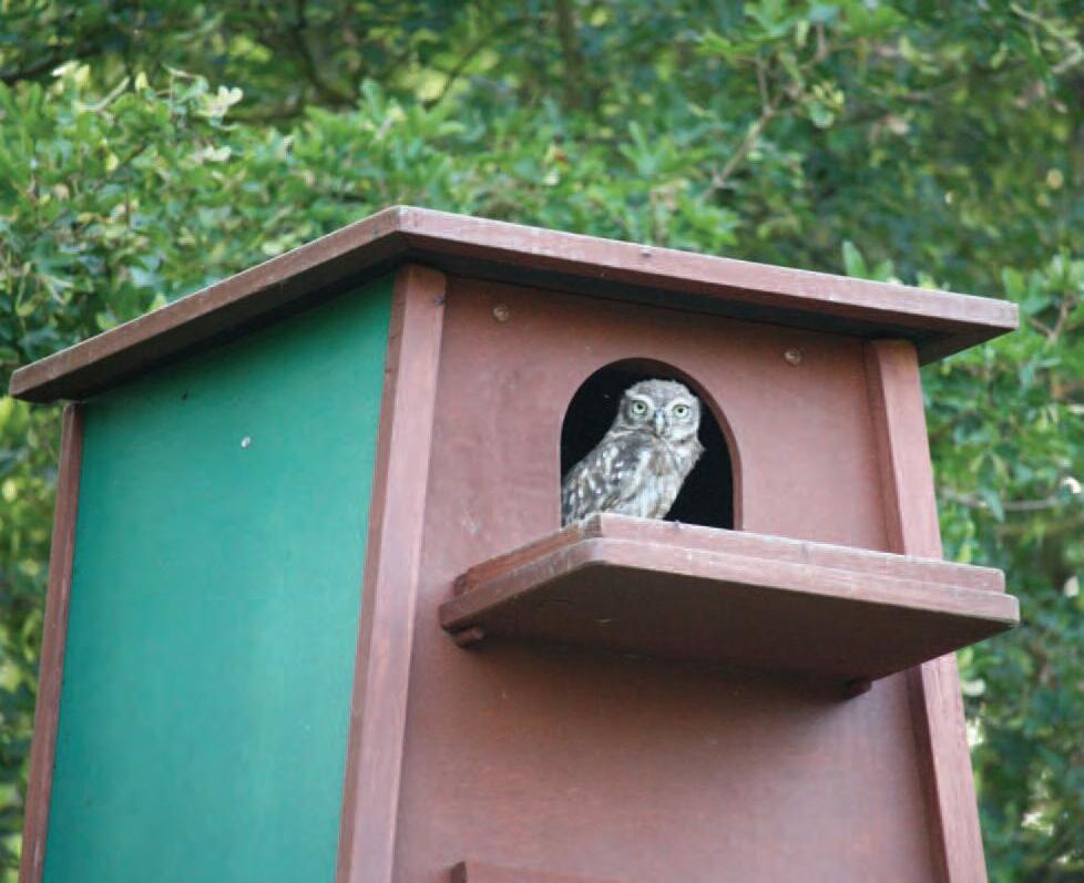 put up will do nicely thank you! Slightly palatial for such a small bird, the Little Owl seems very content and we hope that maybe, with such a posh house, he may soon get a mate.