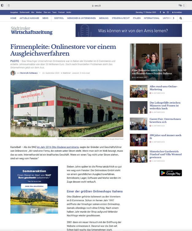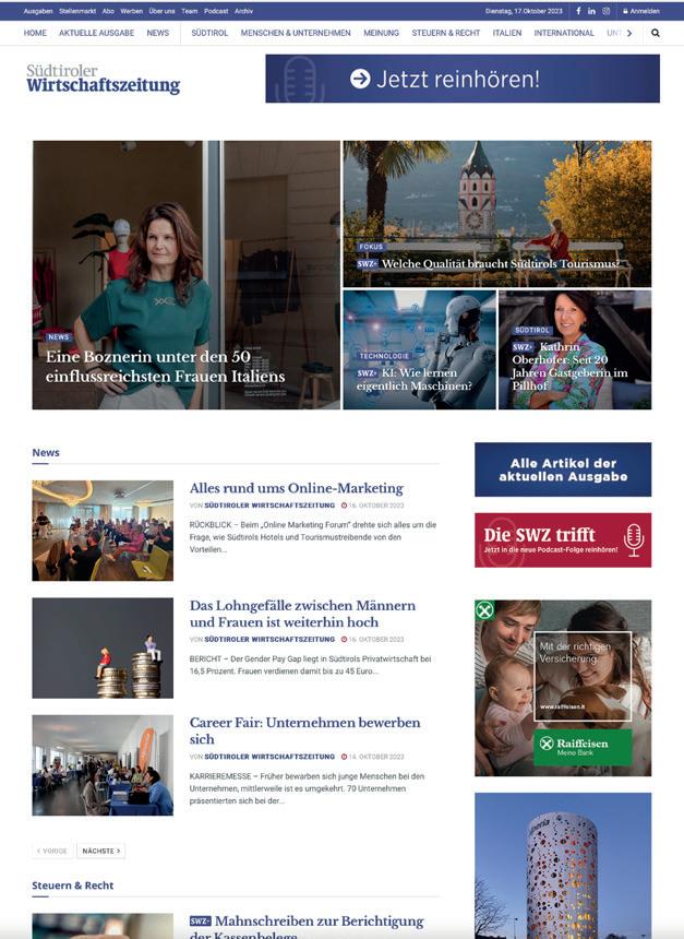 G SWZonline: Blätterbare Digitalversion auf www.swz.it plus historisches Archiv mit Artikeln ab 2003