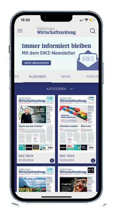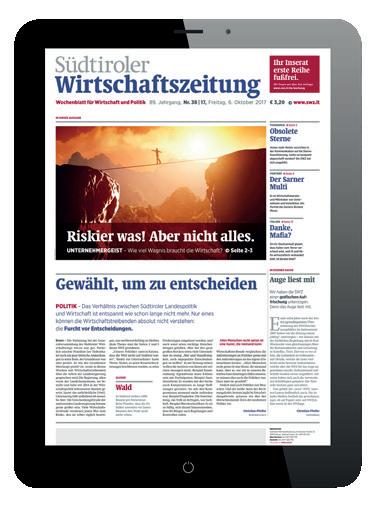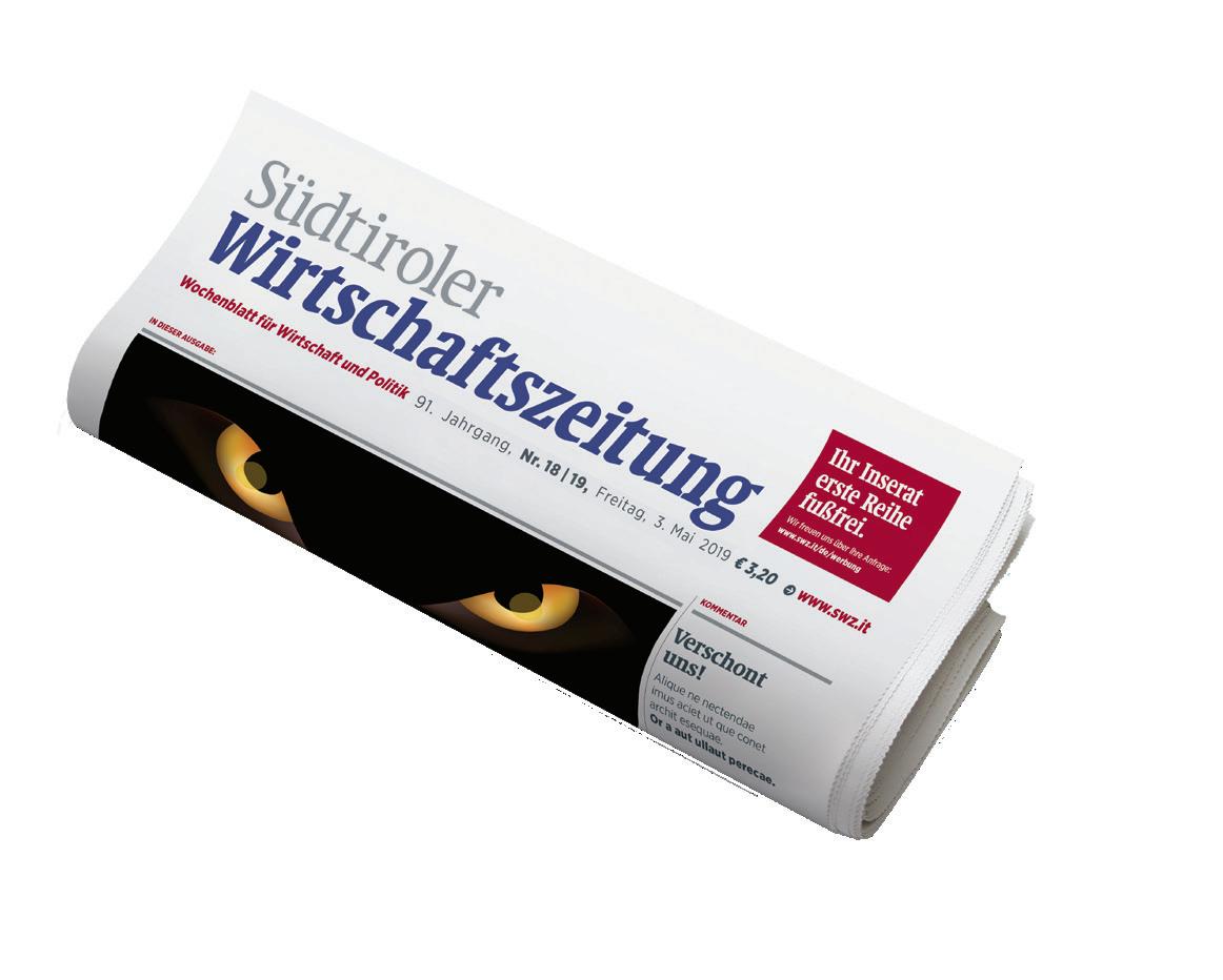 Die Südtiroler Wirtschaftszeitung ist für alle Wirtschaftstreibenden des Landes das wichtigste Informationsmedium. Seit über 100 Jahren.