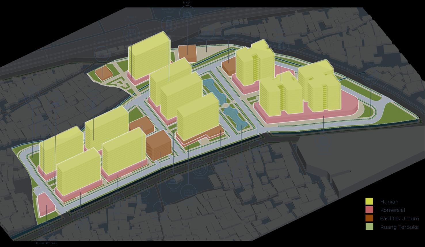 Hunian vertikal dikembangkan sebagai upaya optimalisasi lahan sempit dan meningkatkan ketersediaan hunian terjangkau Pengembangan terbagi berdasarkan 3 tipe unit, tipe 36 diperuntukkan bagi MBR, tipe 48 diperuntukkan bagi masyarakat setempat yang memiliki tanah, dan apartemen tipe 54 yang merupakan hunian komersil