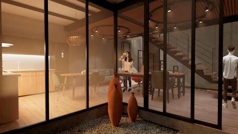 En un terreno de 9 x 6 m dos personas que no son familia ni pareja, diseñan su espacio donde van a habitar y convivir, definiendo el programa arquitectónico e identificando lo privado y lo público, basándose siempre en un concepto y el contexto