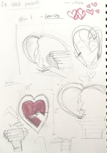 At the start of the semster in Design 1, I was definitely lukewarm about not just my abilities as a potential designer but also as an artist. I started out being more leant turned my and only my deigns. But throughout the course opened up to my classmates and became more aware that being a designer isn't just about having a creative skill but being able to properly convey those ideas and communicate them well to others. My sketchbook was a great tool in that, because I saw it as a place to write, draw, or even scribble in ideas and not care if they got used or looked good or even understandable. More like an outlet for the wheels turning in my head when a new project would be announced. A good take way from this semester is to get to know your teacher and class dynamic because that can make or break a studio class.