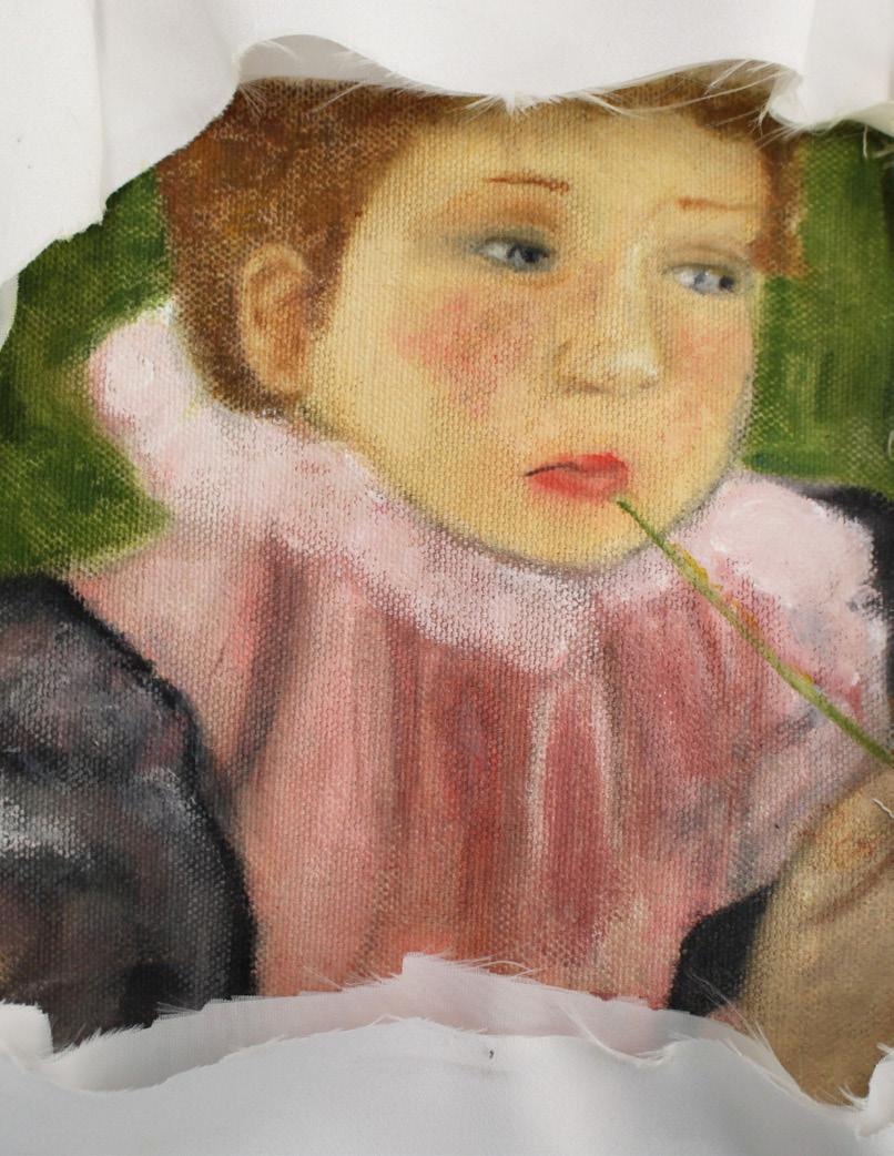 This pieces focuses on the unrealistic beauty expectations of society. The first painting depicts a person conforming to these standards, the harsh rips in the face, symbolise plastic surgery. The painting behind depicts the same person laid bare and defying beauty standards.