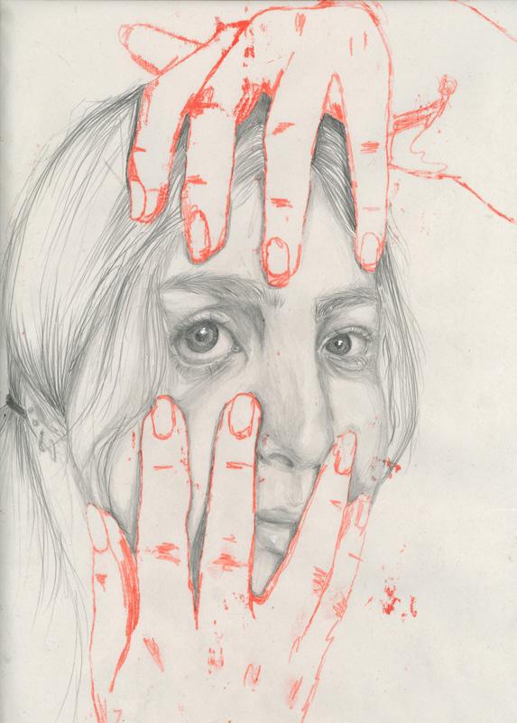 This piece depicts the subject experiencing sleep paralysis. It conveys the way in which it makes the subject feel locked in place.