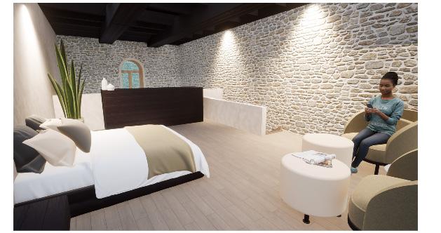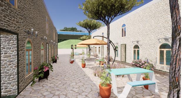 The addition of the airbnb, rooftop bar, and courtyard space to the MonteCalvi winery and vineyard is designed for family and friends to gather and enjoy the true Tuscan wine experience. The vibrant color pallet and textures chosen for the rooftop bar and courtyard are designed to encourage social interaction between the occupants as well as immerse with nature and biophilic design. The vibrant tones become neutral and toned down once occupants enter the living units, easing the mind from the outside vibrancy. The two different atmospheres offer a diverse range of experiences and types of interactions within each space.