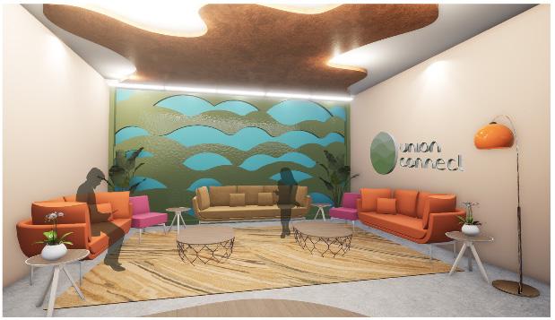 Through this design, my team and I committed to creating and maintaining a welcoming and healthy work environment by providing a variety of spaces that allow for productivity and comfort within the workplace, as well as introducing biophilic design to connect interior and exterior spaces. The company building for Union Connect is an office space designed to take you through the experience of Costa Rica. Beginning on the second level where social interaction and collaboration is encouraged, the vibrant colors of the flora are seen. As one migrates to the third level, the vibrant tones become neutral and toned-down to ease the mind for independent quiet work. With the change in environmental cues between each level, two different atmospheres are welcomed for a diverse range of working styles for office employees. (Collabroation with Mia Pignotti, Ingrid Noyes, and Samantha Milam)