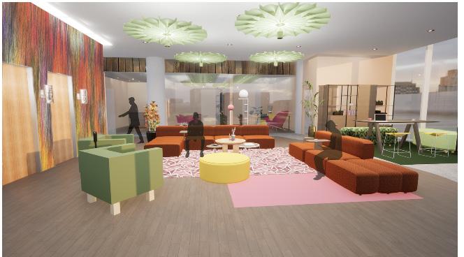 Rendered Dorm Lobby Perpsectives (Collab with Bella Loera)