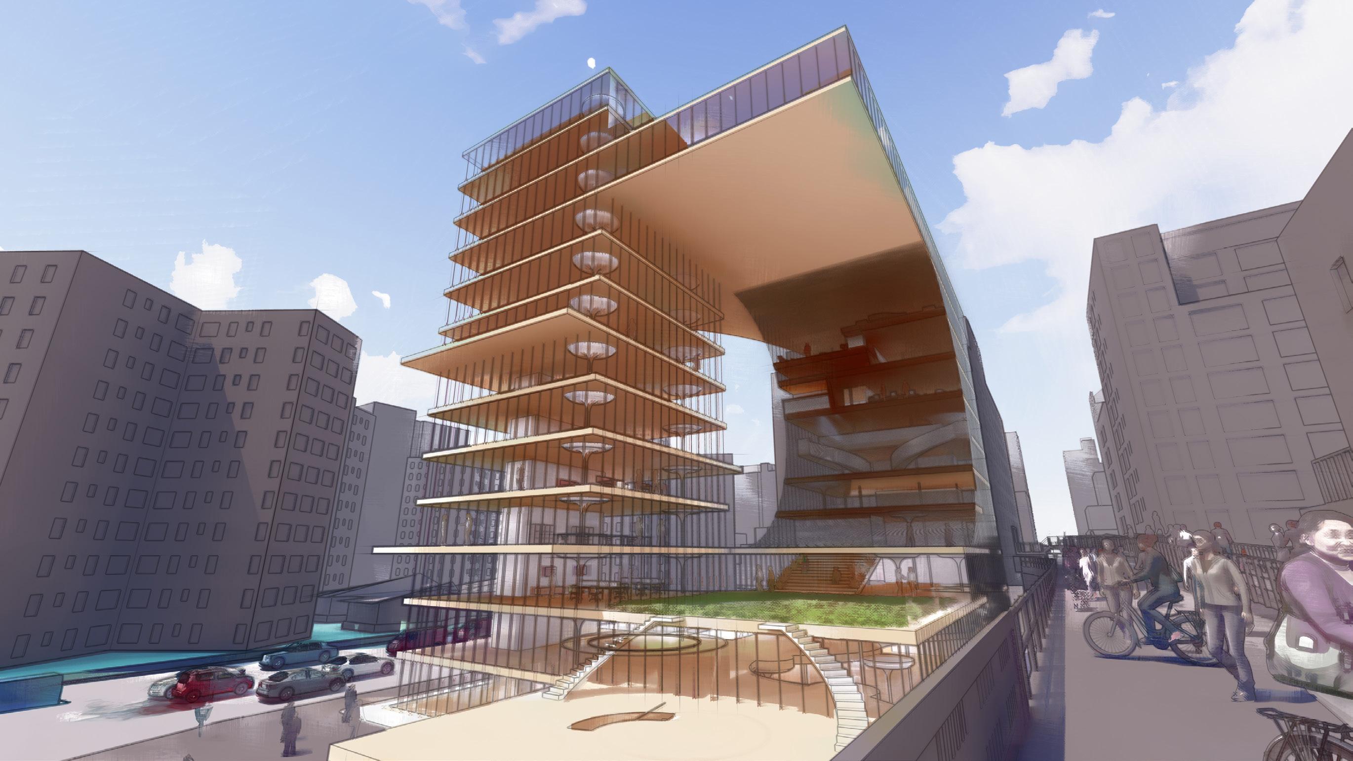 showing the relationship between the building and the highline