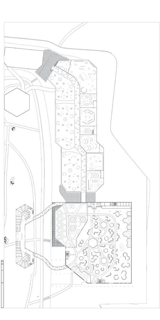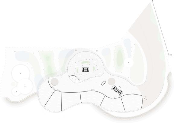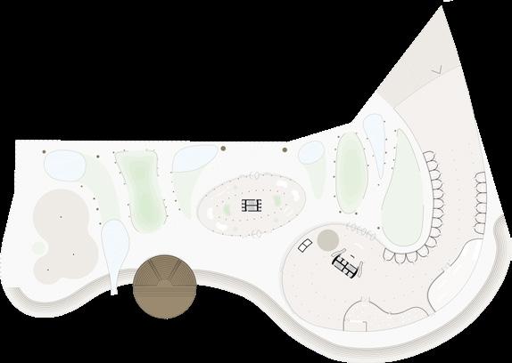 Sections showing the large structure, small structure, and arches creating the pathways throughout the topography design