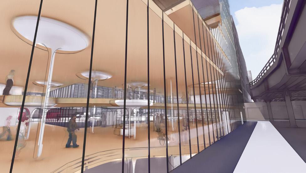 Rendering of the interior of the market’s upper level and roof design