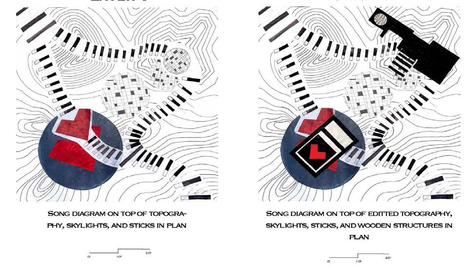Song diagram on top of the topography including skylights arches, and floor plan design