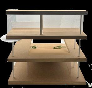 Model photo showing the split pathways of the design leading to the two different structures