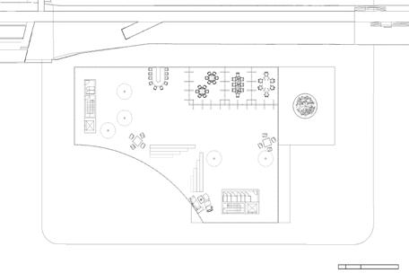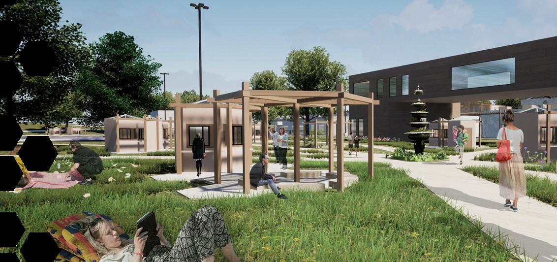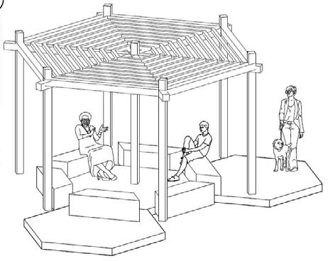 Rendering showing the circulation around and interaction with the kiosks around the site