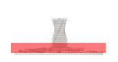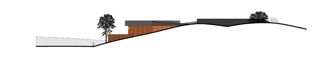 Section through the building with the curve showing the relationship between the two buildings and the curve