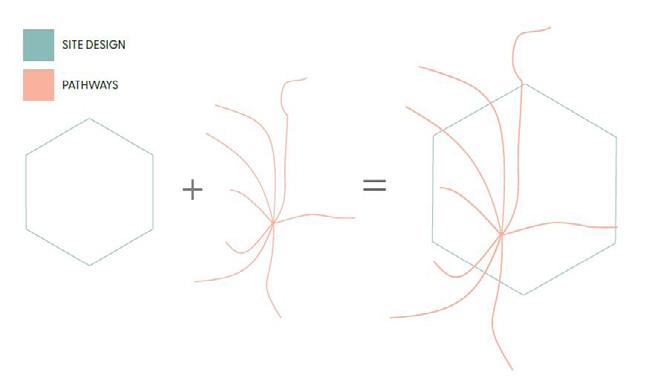 Diagram of the proposed site design in relationship to the proposal for the pathways