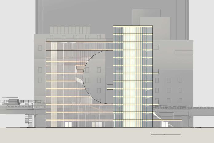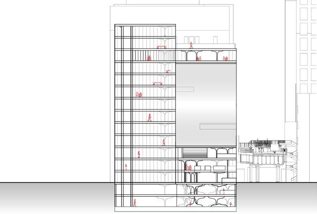 Right elevation of the building along the highline
