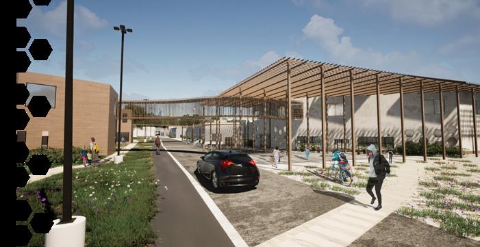Rendering of the pathways between the market and office spaces