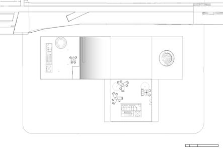 Level where the two buildings merge to create a large common space/ break room