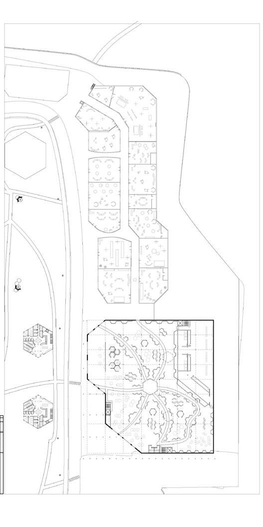 of the overall view of the pathways, mall, office spaces, and market